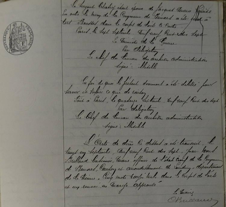 Envoyé en congé le 25 Septembre 1908 en attendant son passage dans la réserve.