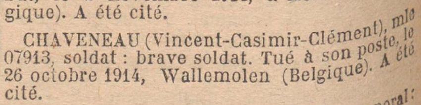 Tué à l'ennemi le 25 Octobre 1914 : Walmolen (Avis officiel du 30 Novembre et 11 Décembre 1914 N° 6210.