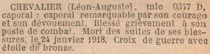 Mort pour la France le 24 Janvier 1918 près de Beaumont (Meuse) suites de blessures de guerre. Avis officiel du Ministère de la Guerre N° 14693 du 9 Février 1918.