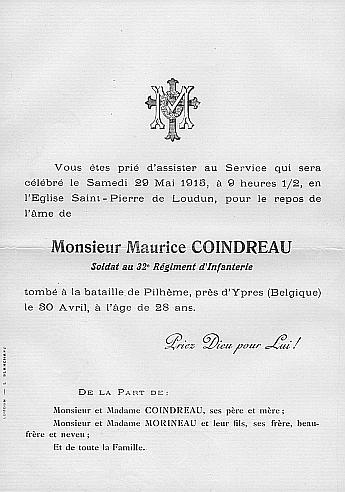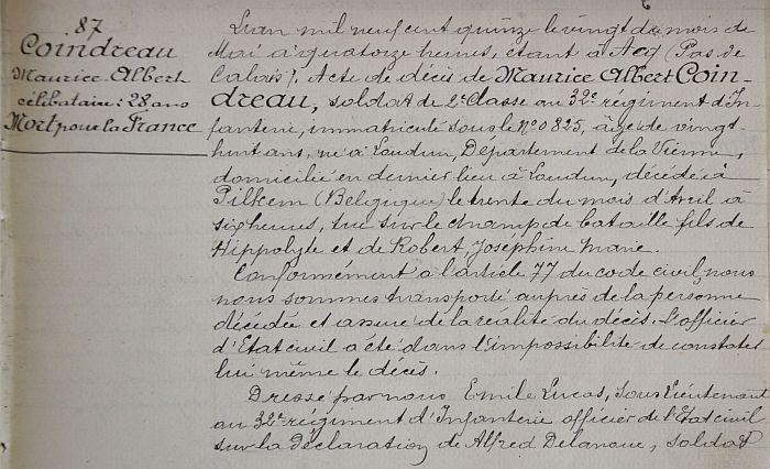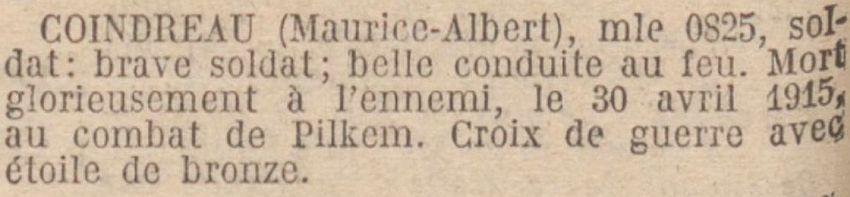 Tombé au champ d'honneur au combat de Pilkem (Belgique).