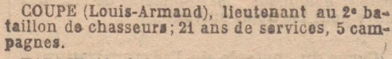 A obtenu le 30 Décembre 1913 une citation au Bulletin Officiel du Ministre de la Guerre, en raison du Rôle et du dévouement dont il a fait preuve dans l'organisation et le fonctionnement des oeuvres coopératives de la troupe.