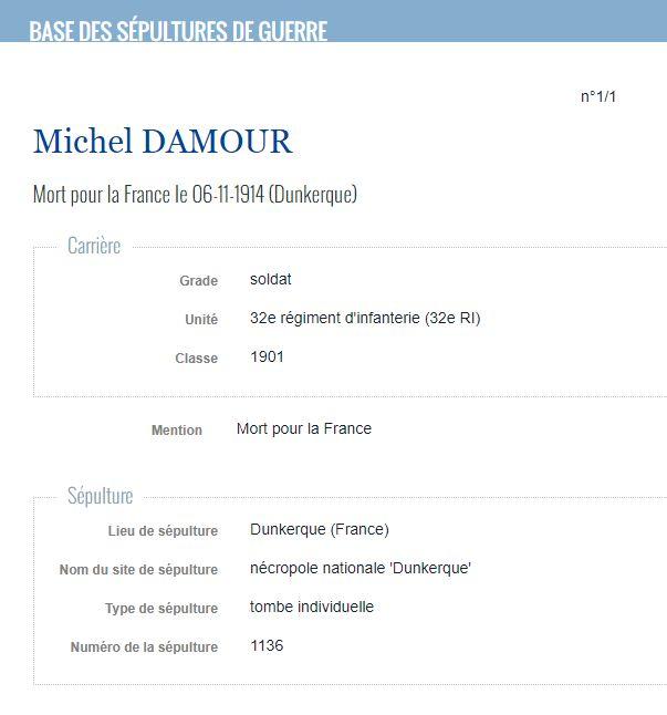Décédé de blessures de guerre à l'Hôpital Temporaire Lamartine de Dunkerque le 6 Novembre 1914.