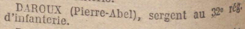 Cité à l'ordre du régiment du 15 juin 1917: 'Sous-officier d'un calme et d'une bravoure remarquables. Blessé très grièvement le 25 mai 1917 dans la tranchée de première ligne'.