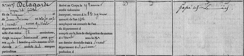 Passé au 121e Régiment de ligne le 12 Février 1814.