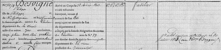 Passé dans un autre corps le 30 août 1813 (au 26e Dragons).