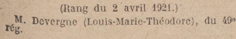 Affecté au 49e Régiment d'artillerie application de l'instruction 8055 1/11 du 11 Juin 1920.