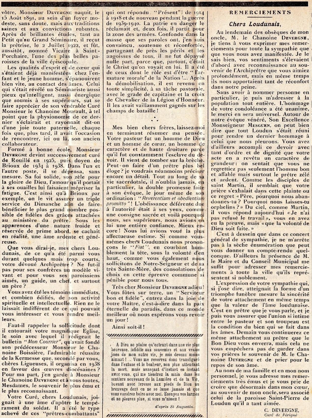 Cité à l'ordre de l'artillerie de la 19e D.I. en date du 10 Juillet 1916 'Infirmier d'un dévouement absolu s'élançant pour prodiguer ses soins aux blessés et ses consolations aux mourants sans le moindre souci du danger, s'est particulièrement distigué le 29 août 1914 et le 6 Juillet 1916, sa batterie venant d'être fortement éprouvée.