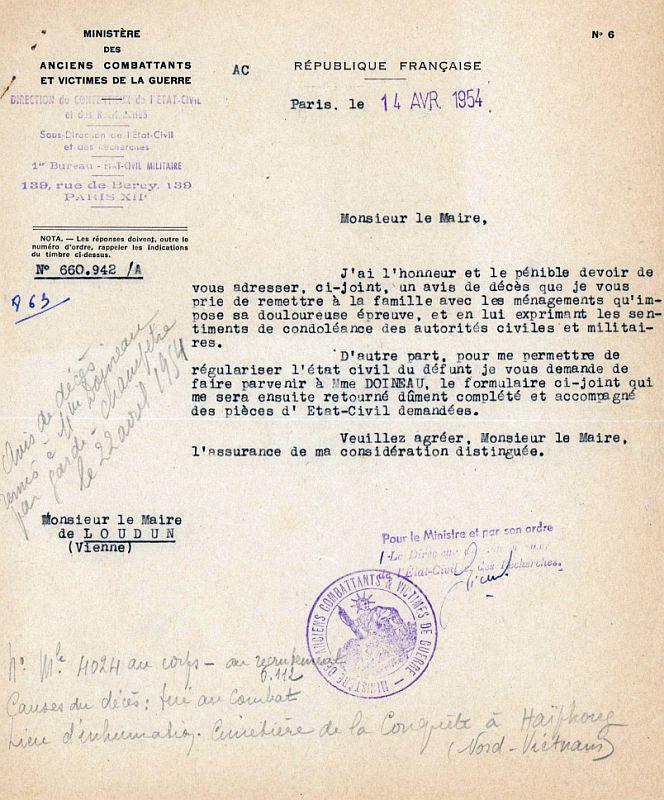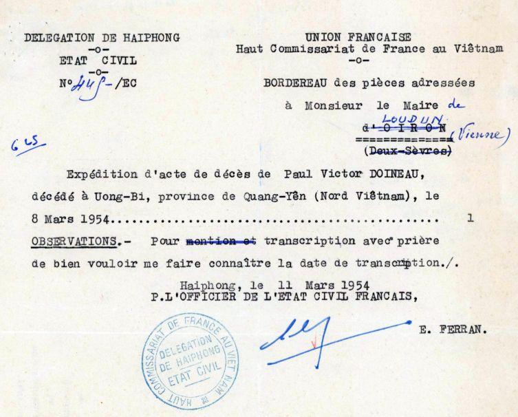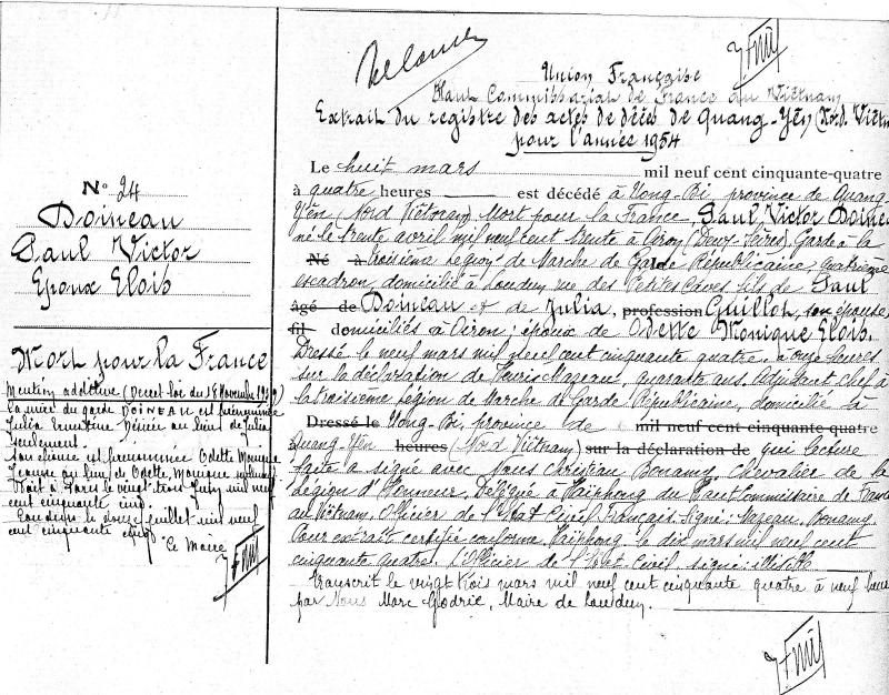 Oiron 30 avril 1930 - Uong Bi (Quang Yen- Nord Vietnam) 8 mars 1954