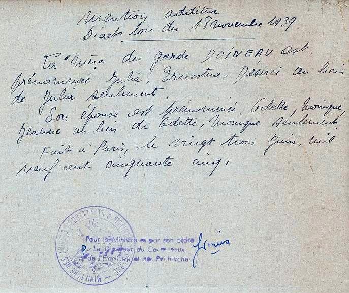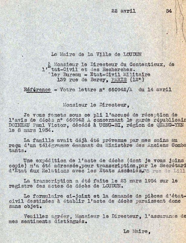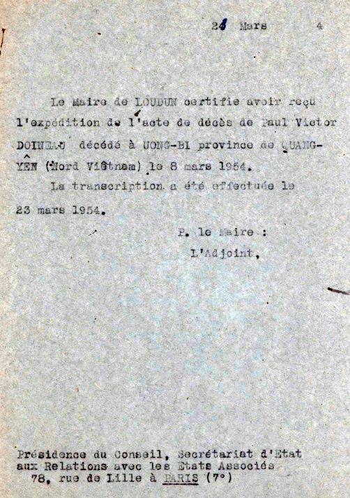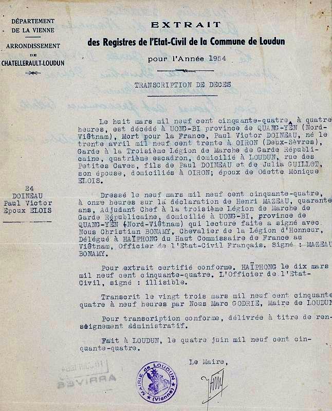 Transcription de son acte de décès - Mairie de Loudun