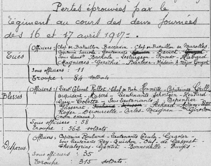 Décès constaté le 18 avril 1917 sur le champ de bataille de Berry au Bac (Marne).