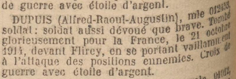Disparu le 21 octobre 1914 au M. de Flirey.