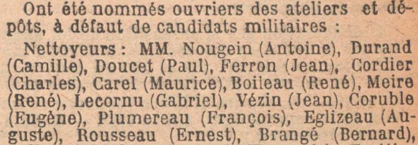 Passé dans l'armée territoriale le 1er Octobre 1922, Affecté Spécial Cie des Chemins de fer de l'État, comme élève mécanicien à Nantes.