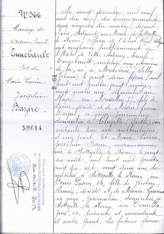 Acte de mariage à Sotteville-les-Rouen
