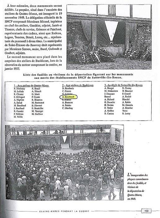 Déporté 'Opération Meerschaun', convoi parti de Compiègne le 20/04/1943 à destination de Mathausen affecté en kommando de travail au chantier de Güsen II dans les usines installées par les firmes Steyr, Daimler, Puch et Messerschmitt pour la fabrication des pièces de fusils et des moteurs d'avions.- Cité dans le "Livre Mémorial des Déportés de France" de la F.M.D. Tome 1 (I.94) p 768.