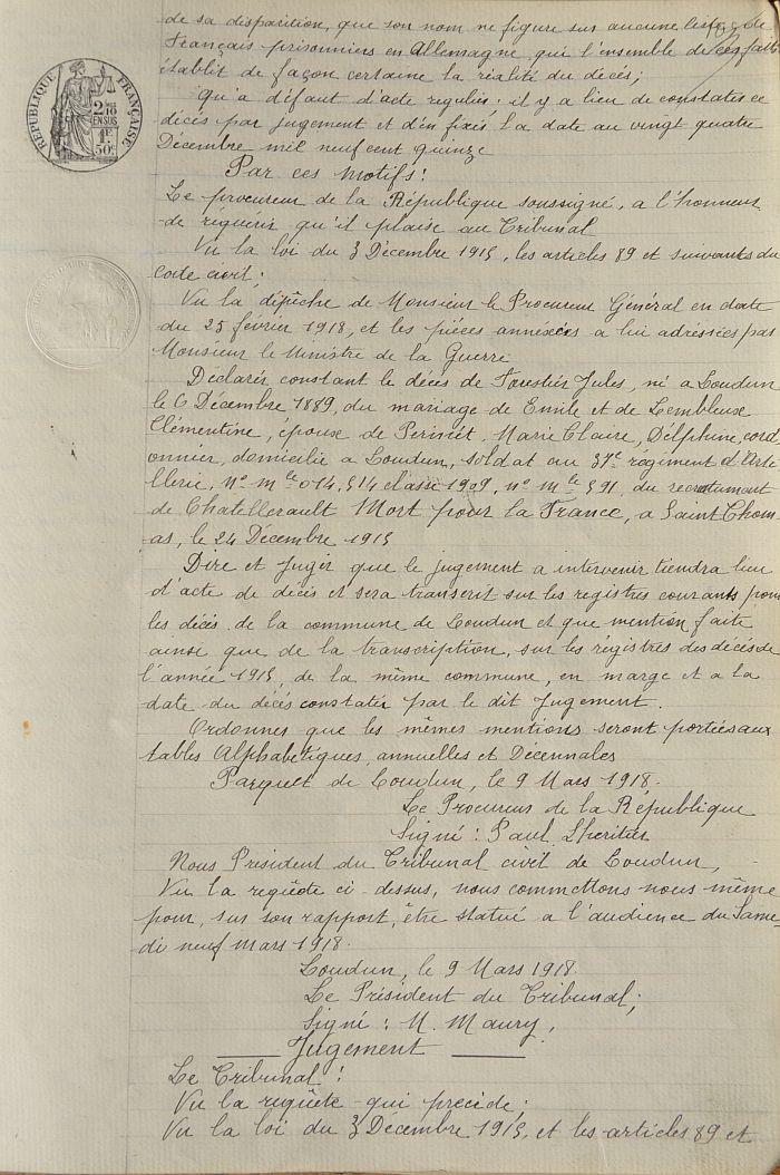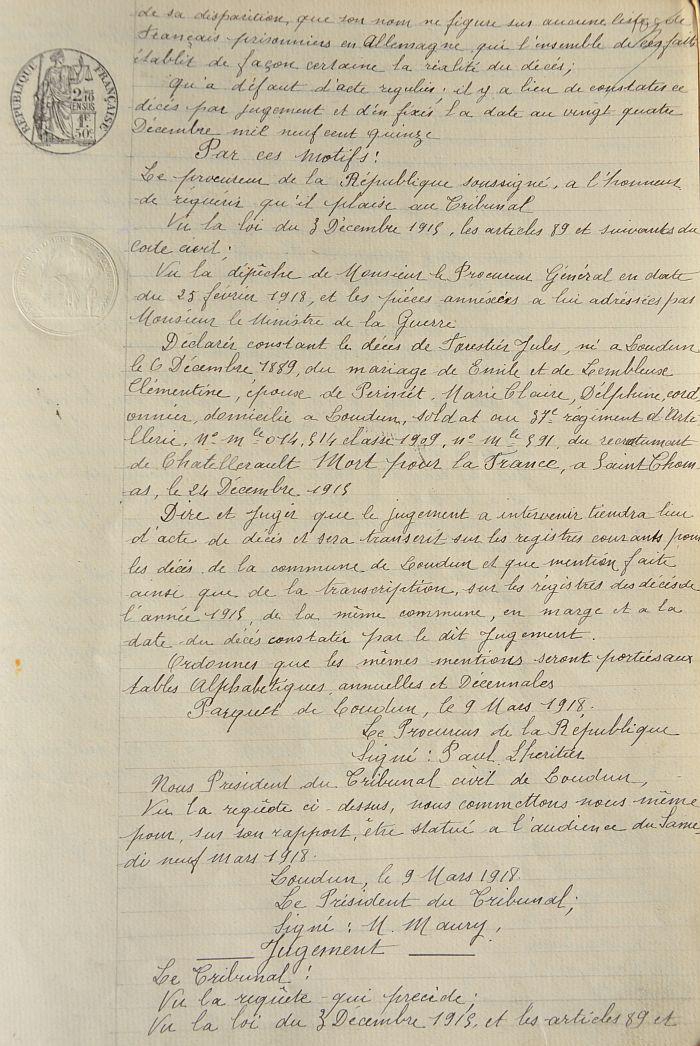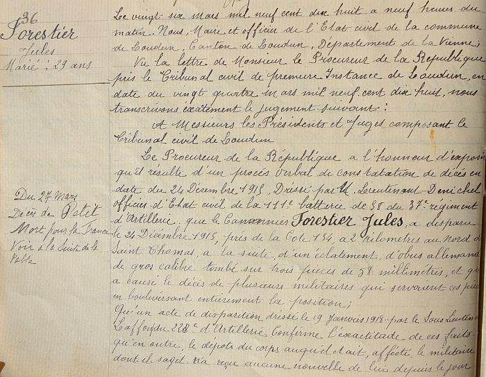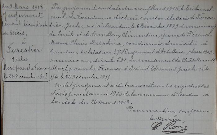 Tué à l'ennemi le 24 Décembre 1915 (près de la côte 154) (Avis officiel du 13 Janvier 1916).