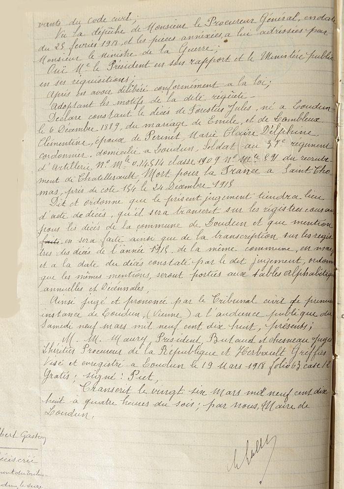 Engagé volontaire pour trois ans le 20 Janvier 1910 à la mairie de Saumur (Maine et Loire) pour l'École d'application de cavalerie.