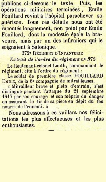 Passé au 372e Régiment d'Infanterie le 25 Juillet 1917.