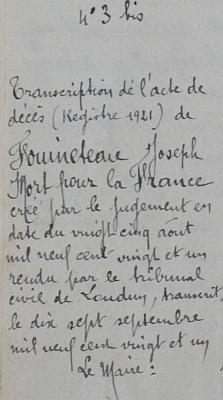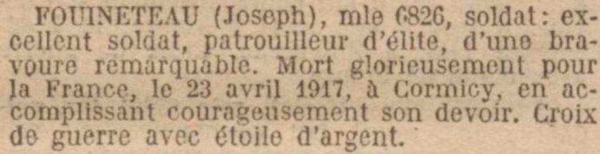 Décès fixé au 23 avril 1917 par jugement déclaratif du tribunal civil de Loudun "Mort pour la France".