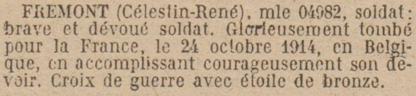 Disparu le 24 Octobre 1914 à Wallemolen (Belgique) (Avis Officiel du 1er Mars 1917 N° 2681c).