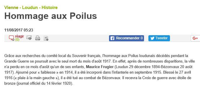 Tué à l'ennemi, le 20 août 1917 au combat de Bézonvaux (avis officiel TP n° 8750 du 28 septembre 1917.