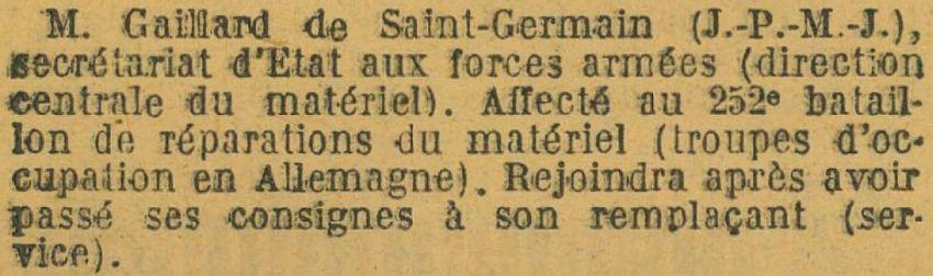 Nommé directeur du Service du Matériel de la première région militaire le 18 novembre 1968.