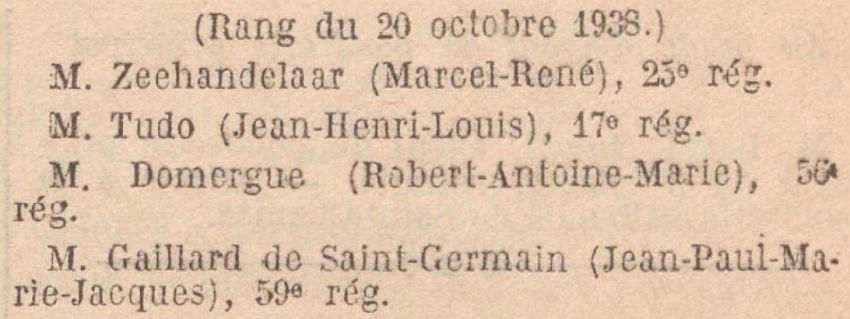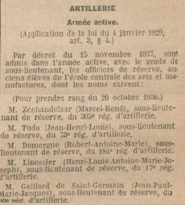 Admis dans l'armée active avec le grade de sous-lieutenant le 20 octobre 1937.