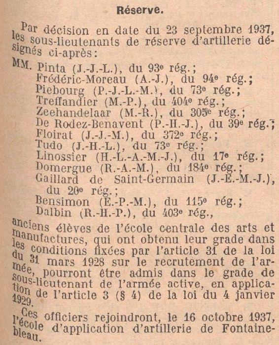 Promu sous-lieutenant de réserve le 20 octobre 1936.