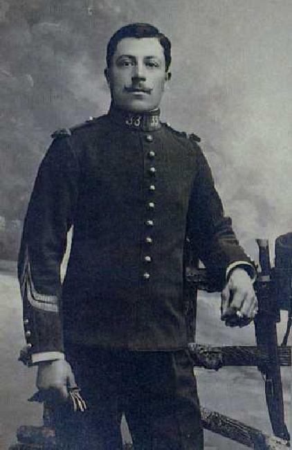 Dirigé le 6 Octobre 1909 sur le 33e Régiment d'Artillerie, arrivé au Corps le dit jour N° Mle 998 et 2e canonnier servant.