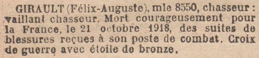 Aux armées : 28-8-1917 au 21 oct. 1918.