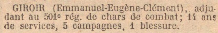 Rengagé pour 2 ans le 6 février 1924 à compter du dit jour au titre du 501e Régiment de chars de combat en qualité de Sergent.