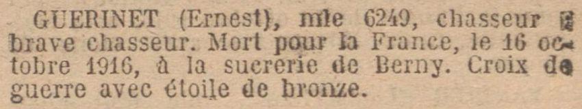 Disparu le 10 octobre 1916 à la Sucrerie de Berny. Avis ministériel du 4 décembre 1916 HO 5521.