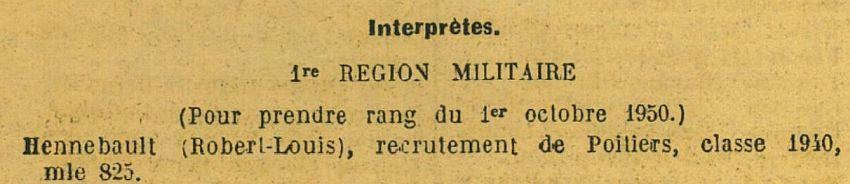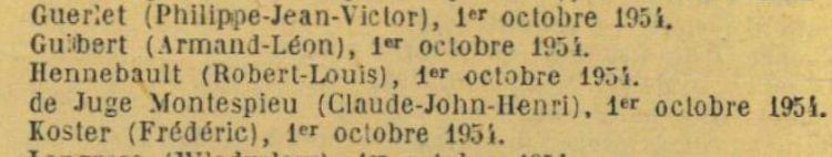 Promu au grade de Lieutenant de réserve par décret du 20-12-1954 (J.O. du 24-12-1954) pour prendre rang du 1-10-54.