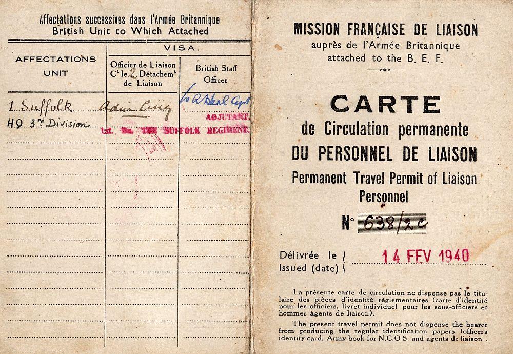 Affecté au Dépôt du Train 4bis, chargé de l'Administration des Interprètes Auxiliaires de langue anglaise (D.M. n° 1839 1/EMA du 23 septembre 1939).