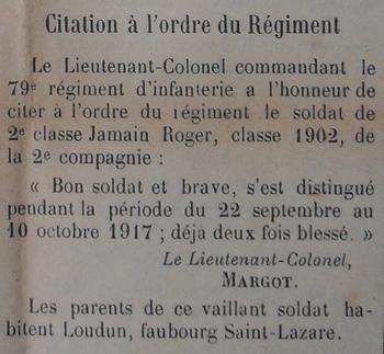 Envoyé en congé illimité de démobilisation à Loudun, le 22 Mars 1919 par le 32e Régiment d'Infanterie (4e échelon 1058) père de 2 enfants: N° 13860.