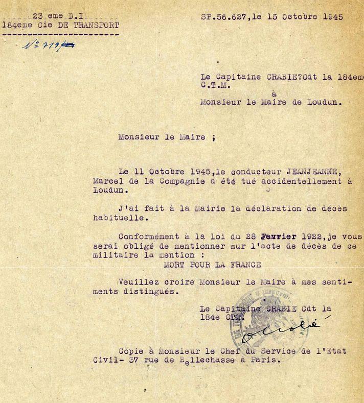 Limoges 16 Mai 1923 - Loudun 11 Octobre 1945
