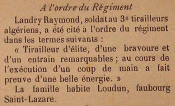Citation à l'ordre du Régiment n° 38 en date du 30 Juillet 1918 'Patrouilleur d'élite d'une bravoure et d'un entrain remarquables au cours de l'éxécution d'un coup de main a fait preuve d'une belle énergie'.