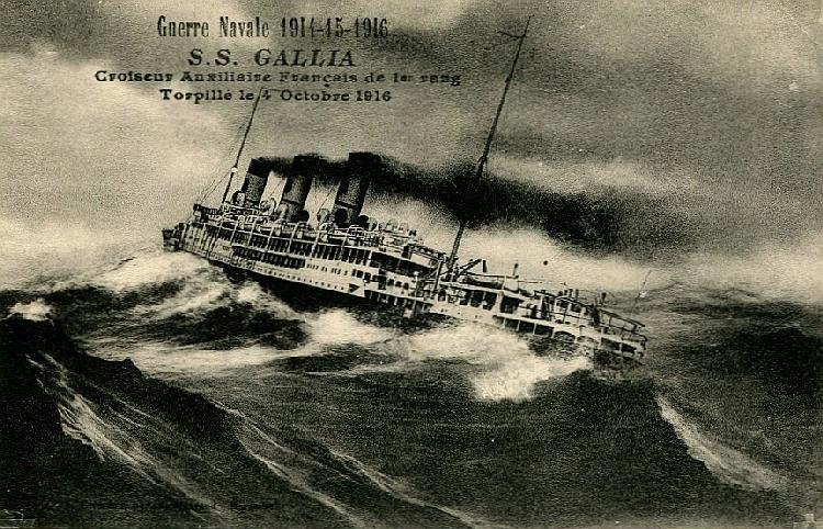 Disparu le 4 Octobre 1916 en mer à bord du transport "Gallia" (présumé décédé) (avis du M. de la G).