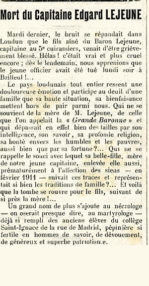 Citation : Ordre de l'Armée du 14 Janvier 1915. A fait preuve en toutes circonstances de belles qualités militaires, chargé de reconnaissances importantes à plusieurs reprises, s'y est fait remarquer par son audace et sa bravoure, toujours prêt à risquer sa vie, a failli plusieurs fois tomber aux mains de l'ennemi.