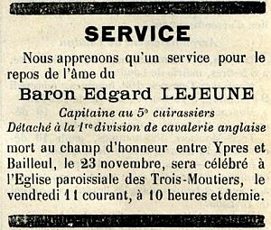Tué à l'ennemi au combat de Cutte (Belgique) le 23 Novembre 1914.