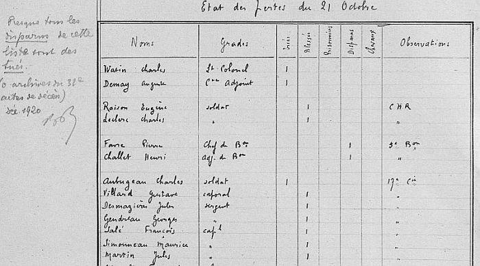 Dirigé le 7 Octobre 1907 sur le 77e Régiment d'Infanterie.