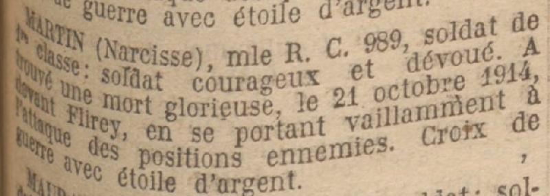 Décès fixé au 21 octobre 1914, d'après jugement déclaratif de décès rendu par le Tribunal de Loudun le 8.1.1921.