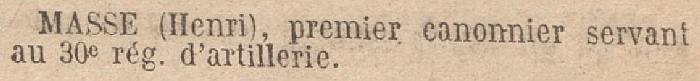 Incorporé (au 30e Régiment d'Artillerie) à compter du 6 septembre 1916, arrivé au Corps le dit jour et Soldat de 2e classe.