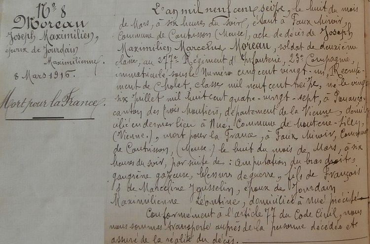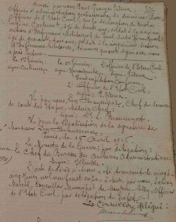 Décédé le 8 mars 1916 à l'Hôpital Anglais de Faux-Miroir (Bulletin d'hôpital).