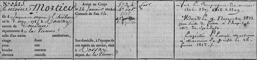 Mort le 9 Novembre 1811 par suite de fièvre à l'hôpital Militaire de Spalato.