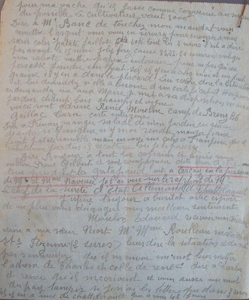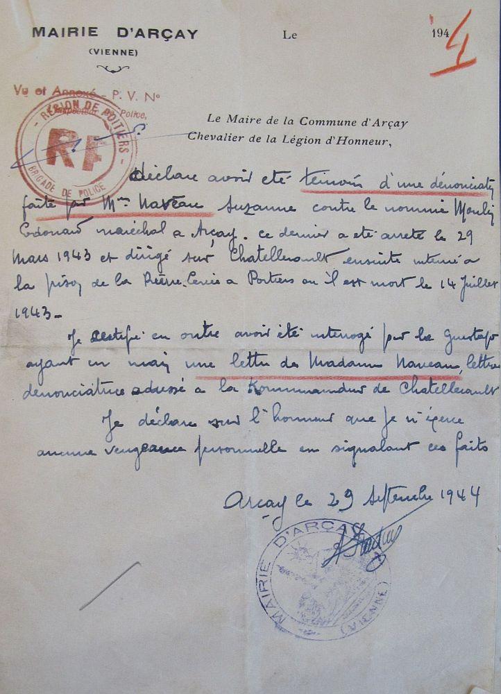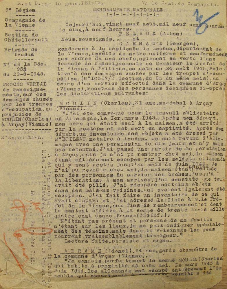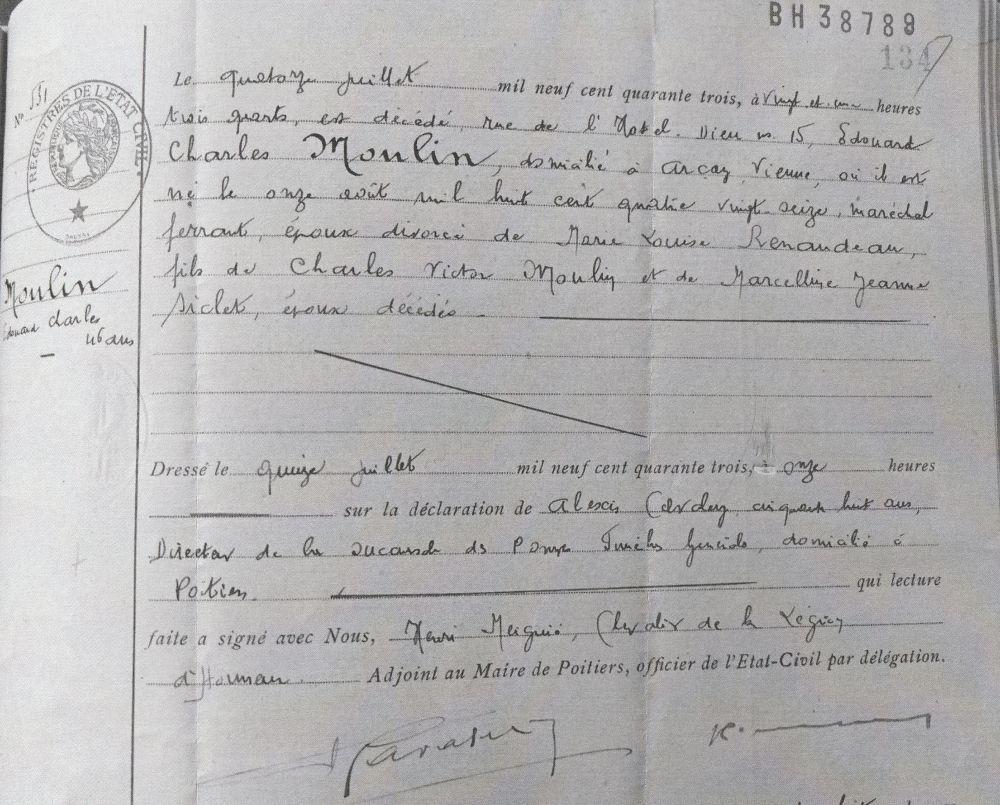 Placé en sursis jusqu'au 30 septembre 1919 comme charron à Arçay Décision du Général Commandant la 9e Région du 24 juin 1919 (N 13).