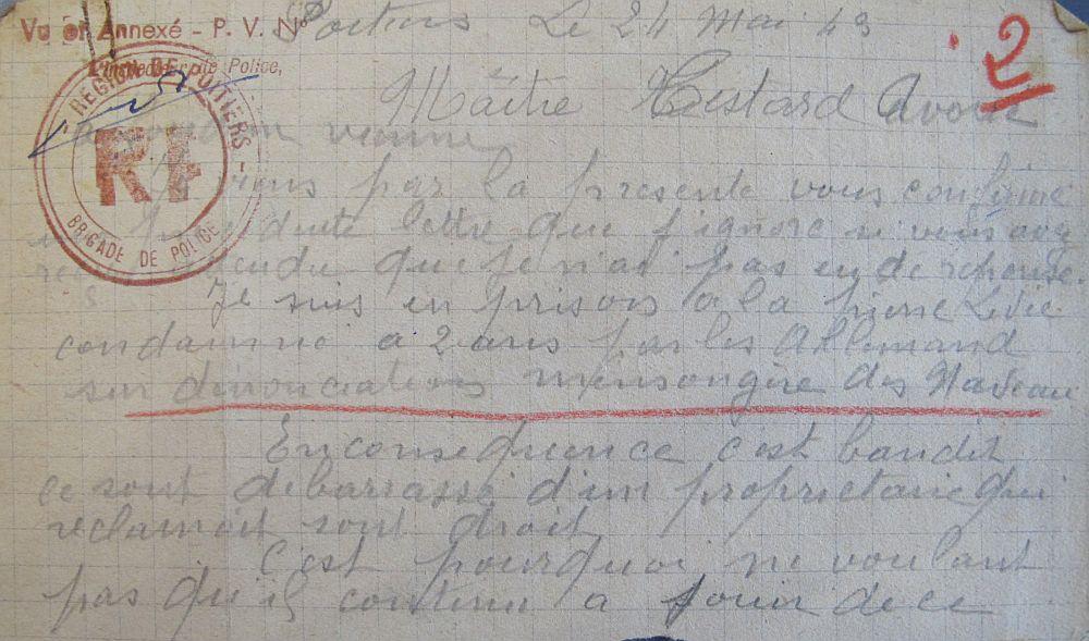 Maintenu ajourné par la commission de réforme de Châtellerault le 30 mai 1917 (Loi du 13 avril 1916).