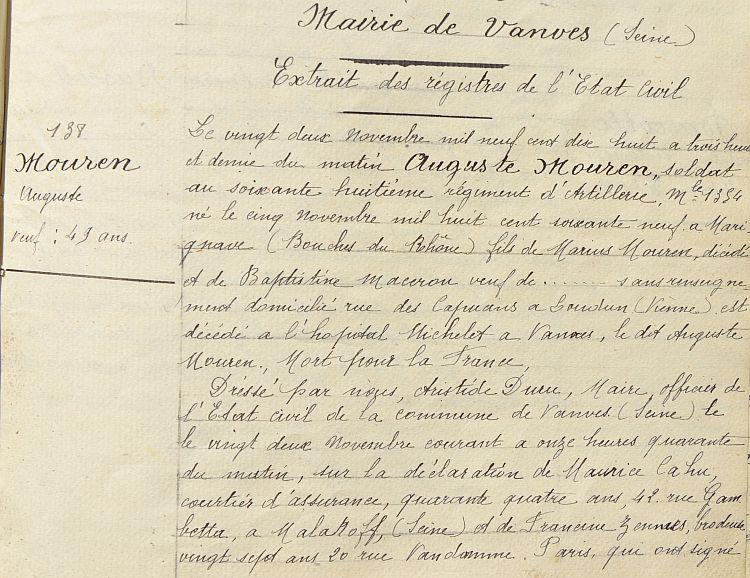 Passé au 68e Régiment d'Artillerie à pied le 1er Août 1917 suivant état du 10e Régiment d'Artillerie à pied du 28 Juin 1918.