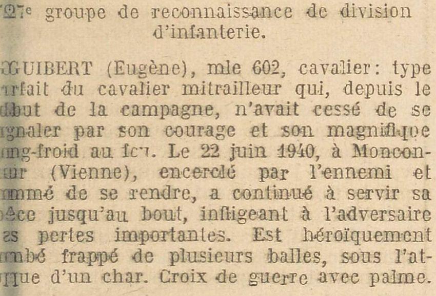 Réintégré dans la cavalerie - J.O. 26 octobrel 1939 (