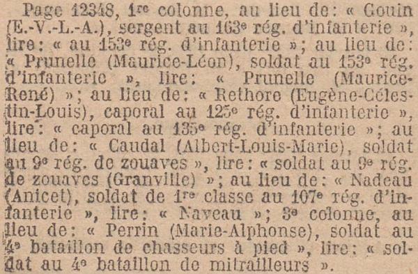 Passé au 90e Régiment d'Infanterie le 5 Janvier 1914.