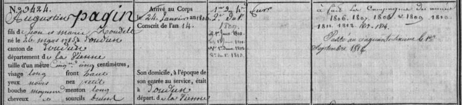 Son domicile, à l'époque de son entrée au service, était à Loudun, département de la Vienne.